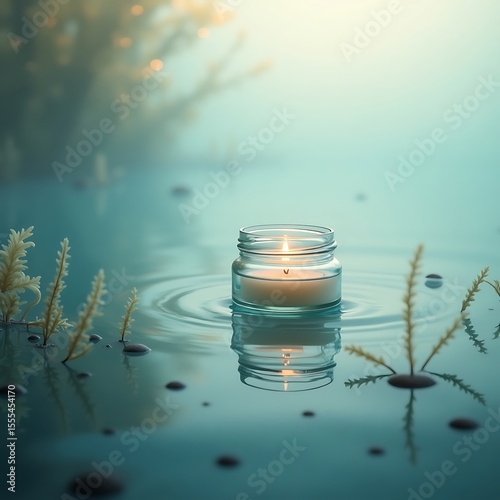 candle, floating, water, ripple, calmness, relaxation, meditation, spa, wellness, calming, mindfulness, serenity, peace, zen, stone, sunlight, underwater, teal, blue, water, light, peaceful, calm, still water, nature, decorative, still life, digital artwork, photorealistic, isolated, beautiful, harmony, calmness, gentle, healing, spirituality, yoga, zen garden, candlelight, romantic, home decor, interior design