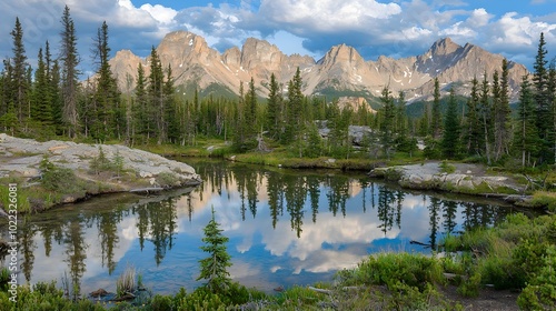 Tranquil Lake at Sunrise with Reflections of Trees and Mountains in Serene Natural Landscape Peaceful and Calm Mirrored Scenery of Wilderness Environment