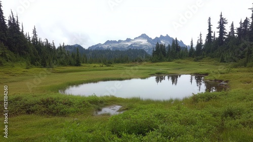 landscape, nature, water, mountain, tree, vegetation, serene, cloudy, outdoors, scenery, tranquil, wilderness, environment, park, green, lake, meadow, wetland, sky, fog, calm, travel, exploration, ecosystem, natural, wildlife, grandeur, peaceful, remote, scenic, summer, adventure, relaxation, beauty, rural, habitat, wetland, hiking, flora, fauna, crystal, bright, picturesque, panoramic