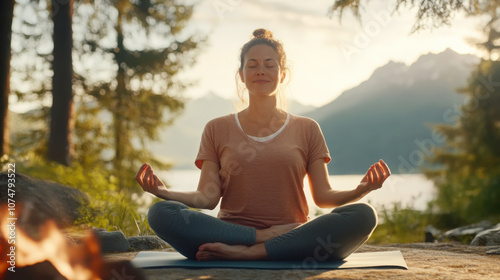 Tranquil meditation in nature - yoga and mindfulness practice for inner peace