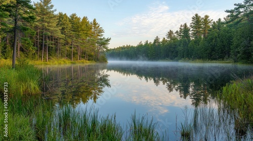 nature, lake, forest, mist, morning, sunrise, water, calm, peaceful, tranquil, serene, landscape, scenic, wilderness, tree, green, sky, cloud, blue, summer, season, canada, lake ontario, travel, photo, beautiful, digital, photo, image, picture, wallpaper, background, screen, design, art, graphic, illustration, stock
