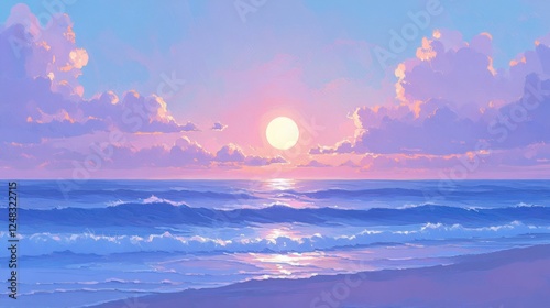 Tranquil Sunset Over Ocean Waves with Soft Cloud Formation