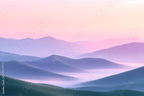 soft light, tranquil scene, rolling hills, vale, pink, lavandula, light blue, shadow, natural beauty, calmness, sunrise, serenity, picturesque, dawn, morning glow, scenic view, peace, photo, nature scene, harmony, aethereal, shadow play, scenic beauty, dreamlike