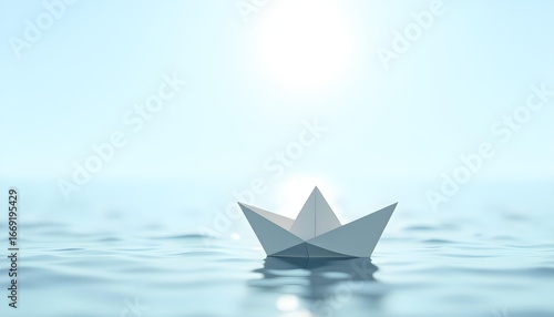 Tranquil Voyage: A White Paper Boat Sailing on a Calm Pale-Blue Sea