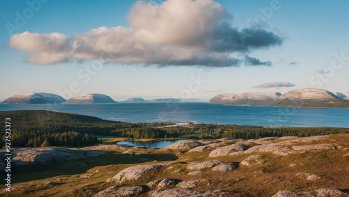 scandinavian, landscape, tranquil, water, rolling, hill, nature, scenery, mountain, clear, sky, cloud, green, forest, wilderness, exploration, travel, adventure