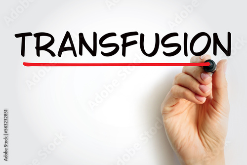 Transfusion is the process of transferring blood products into a person's circulation intravenously, text concept for presentations and reports