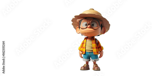 character, boy, cute, three-dimensional, render, goggles, hat, shirt, short, shoe, backpack