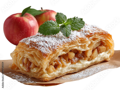 [Transparent Background PNG]Delicious Apple Strudel with Powdered Sugar