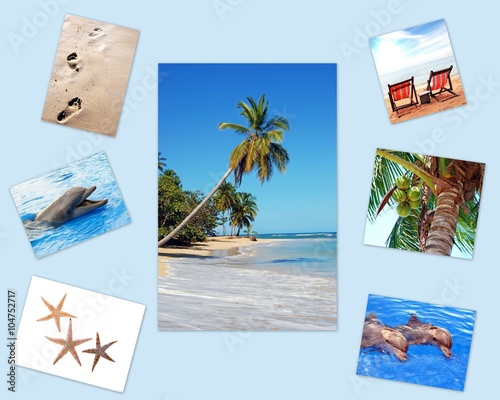 beach, sand, sandy shore, palm, vacation, dream, sea, blue, travel, travel, travel agency, swimming, beach, summer getaway, summer getaway, travel, ocean, summer, paradise, turquoise, heaven, footprint, footprint, palm, collage, caribbean, south, sun, tropical, water, postcard, wanderlust, dolphin, dolphin, dolphin, coconut, tour tourism, vacation, beach chair, starfish, commercial