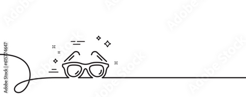 Travel sunglasses line icon. Continuous one line with curl. Trip sun glasses sign. Holidays symbol. Sunglasses single outline ribbon. Loop curve pattern. Vector