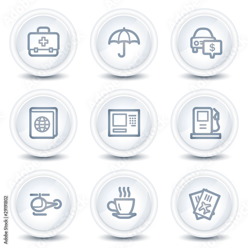 travel, vacation, cup, tea, cafes, bar, umbrella, protect, helicopter, transport, life saver, atm, bank, aids, medicine, service, gasoline, gas, filling station, map, book, passport, aeroplane, ticket, car, sale, car rental, rent, buttons, icon, cyberspace, pictogram, signs, symbol, web, glossy, bright, circle, collection, element, gradient, pearl