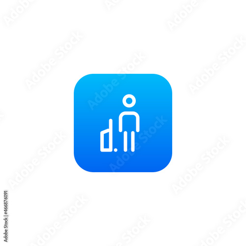 passenger, traveler, bag, holiday maker, queue, check, security, private, standing, aerodrome, icon, baggage, baggage, streetcar, trip, checkout, suitcase, load, belonging, taxi, transport, businessman, service, aeroplane, business, schedule, terminal, airline, person, international, vacation, transportation, man, woman, travel, line, app, buttons, mobile, streamline, monogram, pictogram, signs, symbol, vector, web, website