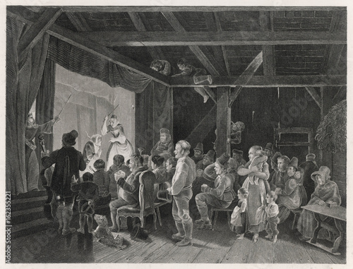 travelling, player, theatre, going, early, century, company, entertain, village, staging, performance, barn, history, historical