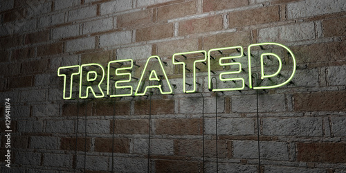 TREATED - Glowing Neon Sign on stonework wall - 3D rendered royalty free stock illustration. Can be used for online banner ads and direct mailers..