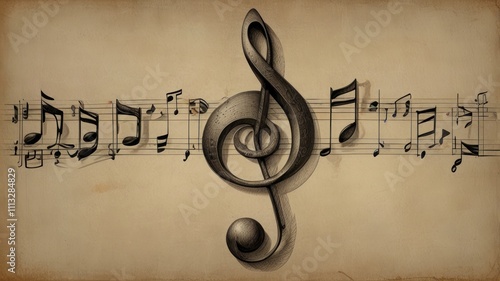 treble clef, sheet music, vintage, antique, music notes, musical score, background, texture, paper, aged, grunge, melody, harmony, rythm, song, composition, orchestra, band, musical instrument, art, illustration, drawing, pencil sketch, graphic design, abstract, classical music, music lover