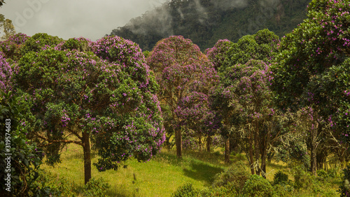 TREE FOREST WITH PURPLE COLOR FLOWERS AND GREEN LEAVES