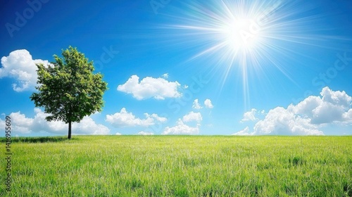 nature, sky, cloud, field, grass, tree, sun, sunny, bright, landscape, summer, green, blue, meadow, day, peaceful, scenic, outdoors, sunlight, season, countryside, rural, environment, clear, weather, freedom, calmness, horizon, open, space, idylli, beauty, spring, calm, panorama, freshness, growth, earth, natural, vista, vibrant, cloudscape, background, view, clean, pasture, expanse, heaven