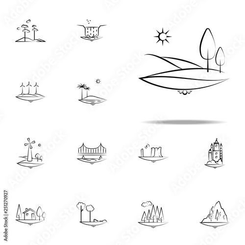 tree, sun mountain icon. Landspace icons universal set for web and mobile