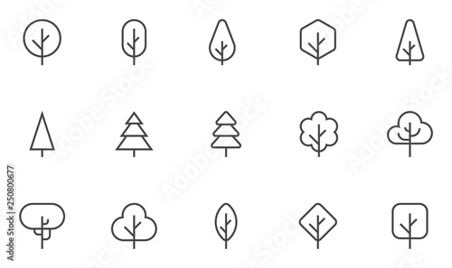 Tree Vector Line Icons Set. Forest, Park and Garden Trees Collection. Coniferous And Deciduous Trees. Editable Stroke. 48x48 Pixel Perfect.