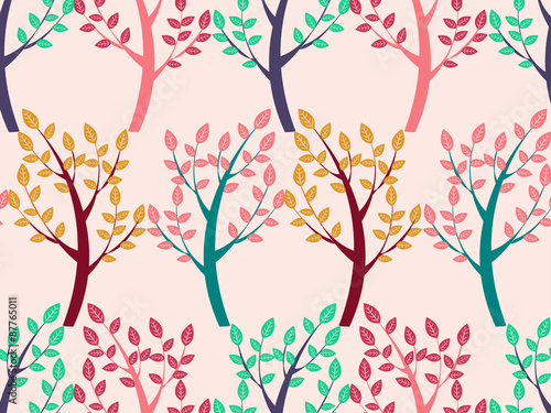 Trees seamless pattern on red background