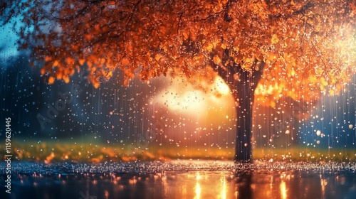 trees water drops falling from it, warm colors, beautiful generative ai