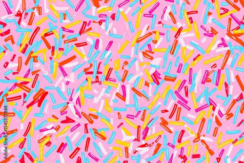 trendy pattern of colorful sprinkles for background of design banner, poster, flyer, card, postcard, cover, brochure over pink