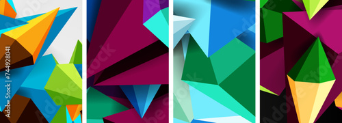 Triangle abstract concepts poster set with geometric minimal designs