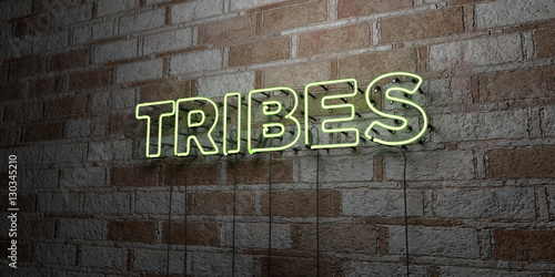 TRIBES - Glowing Neon Sign on stonework wall - 3D rendered royalty free stock illustration. Can be used for online banner ads and direct mailers..