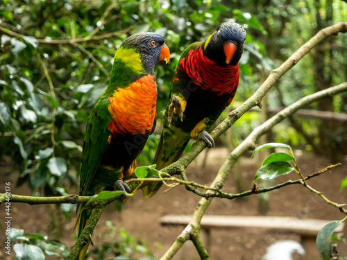 bird, parrot, colourful, rainbow, animal, green, peak, red, nature, tropical, blue, australia, wildlife, feather, rainbow lorikeet, branch, colours, parrot, inhospitable, orange, yellow