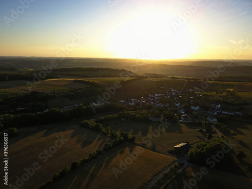 sunset, countryside, heaven, nature, sunrise, mountain, sun, view, cloud, hill, horizon, light, morning, travel, evening, green, blue, countryside, sea, orange, flux, ocean, fog, water, trier, village