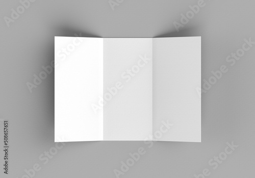 Tri-fold brochure, booklet mockup for graphic designers presentations and portfolios. 3D rendering.