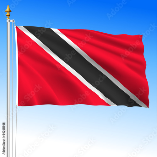 Trinidad and Tobago, official national waving flag, caribbean country, vector illustration
