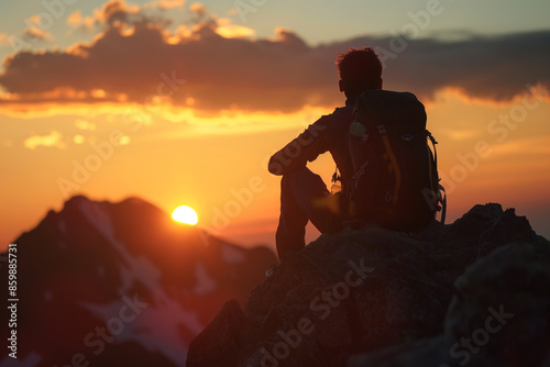hiker, mountain, summit, sunrise, adventure, climber, peak, hiking, outdoors, exploration, nature, triumph, journey, horizon, silhouette, freedom, majestic, epic, landscape, scenery, view, light, dawn, determination, perseverance, resilience, ascent, backpacker, wilderness, remote, beautiful, cloud, sky, magnificent, sunset, alpinist, goal, explorer, solitude, elevation, pinnacle, ridge, overcome, man, wanderlust, zenith, zen, dusk, person