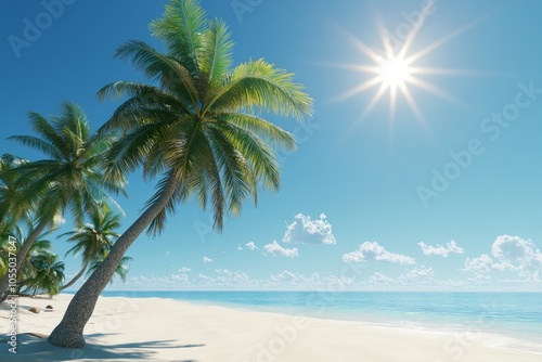 tropical beach, palm tree, ocean view, sunny day, white sand, blue skies, vacation, paradise, tranquil scene, exotic beach