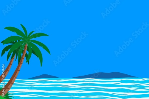 sea, summer, ocean, tropical, background, beach, palm, island, water, sky, illustration, nature, travel, landscape, wave, vacation, paradise, wave, holiday, spring, scene, banner, vintage, retro, trip, childhood, decoration, season, journey, element, drawing, vignetting, 60s, 70s, lifestyle, destination, leisure, activity, sand, coconut, caribbean, seascape, palm tree