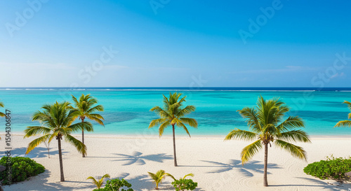 Tropical Beach with Palm Trees and Turquoise Water - Generative AI