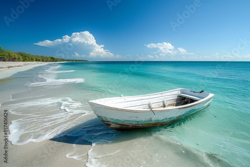 tropical, beach, ocean, sea, dinghy, sand, shore, coast, island, summer, vacation, turquoise, water, blue skies, cloud, scenic, landscape, boat, holiday, travel, idylli, paradise, relaxation, nature, horizon, scenic view, wave, calm, serene, sunny, white sand, peaceful, exotic, outdoors, clearwater, coastline, uninhabited, sunshine, beautiful, day, tour tourism, maritime, tranquil scene, caribbean, nautical