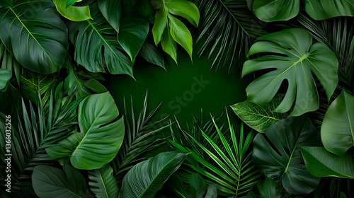 tropical, leaf, green, plant, nature, jungle, floral, exotic, lush, pattern, background, texture, design, foliage, green leaf, forest, frame, border, summer, decoration
