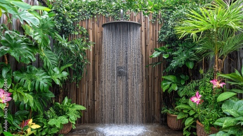 shower, tropical, garden, plant, lush, greenery, rain, bamboo, water, nature, spa, relaxation, oasis, zen, privacy, retreat, foliage, jungle, exotic, decor, design, bathroom, modern, waterfall, fresh, clean, peaceful, beautiful, idylli, elegant, luxury, escape, refreshing, invigorating, tranquil, private, instant, water feature, environmentally friendly, sustainable, zen garden, garden design