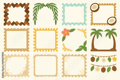 Tropical Palm Tree and Coconut Decorative Frames Collection