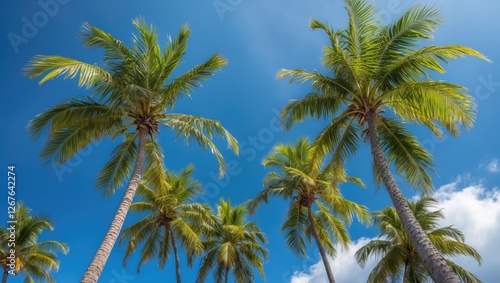 tropical, palm, tree, clear, blue, sky, bright, sunlight, lush, green, foliage, relaxing, natural, landscape, vacation, exotic, outdoors, summer, nature, tropical paradise, scenic, beauty, tranquil, peaceful, environment, palm, sunny, vibrant, scenery, horizon, sunny day, botanical, greenery, natural beauty, travel, idylli, vacation spot, island, coastal, shade, paradise, refreshing