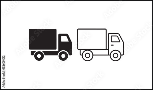 truck, delivery truck, vector, outline, silhouette, black-and-white, editable, isolated, minimal, transportation, contour, vehicle, drive, shipping, logistic, wheel, modern, industrial, half face, motor, load, route, highway, professional, machinery, service, speed, tool