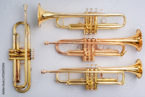 trumpet brass musical instrument set, isolated minimal