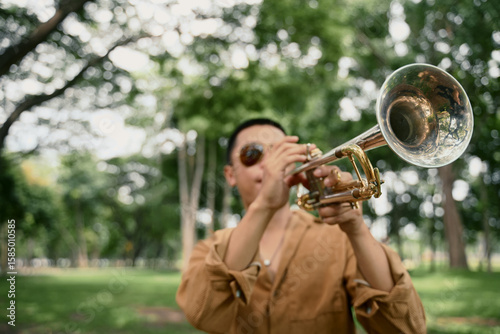 musician, trumpet, musical, artist, nature, harmony, jazz, entertainment, man, playing, horn, player, person, classical, blowing, sound, portrait, event, park, wind, outdoors, music, urban, live, green, tree, grass, solo, performance, tune, melody, creativity, hobby, forest, calm, talent, leisure, lifestyle, freedom, peaceful, expression, practice, enjoyment, note, relaxing, inspiration, open air, activity, tone