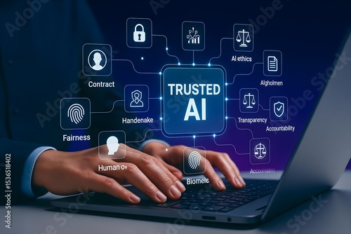 ai, technology, computer, ethic, transparency, fairness, security, biometric, digital, innovation, analysis, user, interface, datum, interaction, software, privacy, contract, network, development, system, design, icon, trust, algorithm, governance, online, application, research, business, strategy, hand, laptop, workspace, modern, concept