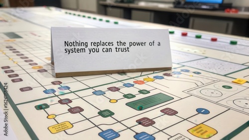 Trustworthy System Concept on a Printed Flowchart and Diagram Board