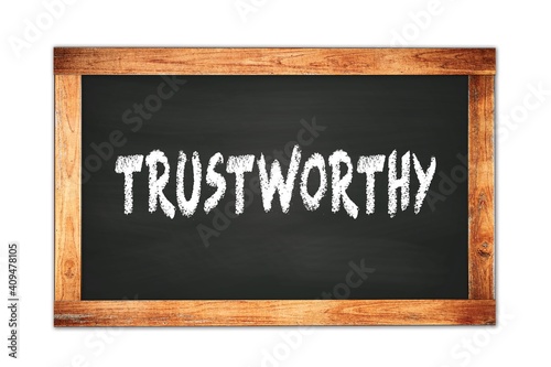 TRUSTWORTHY text written on wooden frame school blackboard.