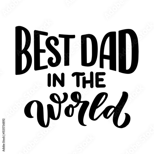 T-shirt design - black and white lettering design saying best dad in the world on a white background design art transparent design - png