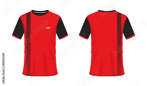 T-shirt red and black soccer or football template for team club on white background. Jersey sport, vector illustration eps 10.