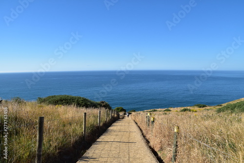 beach, sea, sky, landscape, coast, water, ocean, nature, path, sand, blue, summer, grass, coastline, wooden, wood, fence, horizon, road, cloud, lake, bridge, holiday, shore, view, sunny, sunday, vacation, travel, trip, new zealand, queenstown, geology, geography, stone